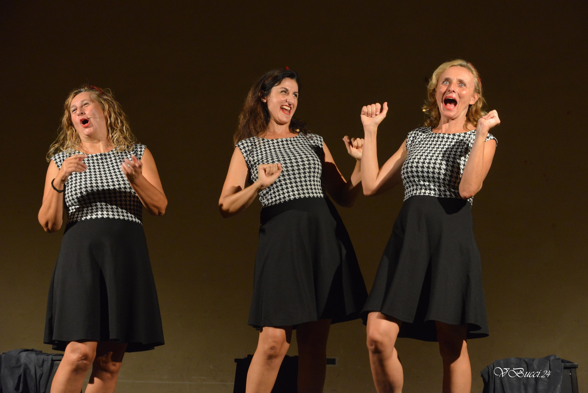 Uno studio sul linguaggio del corpo e ciò che sottende. I diversi modi di parlare e gli ambiti linguistici. La comunicazione fatta di luoghi comuni e formule linguistiche. Non ultimo, quello che è alla base del saper comunicare: la capacità di ascolto. Si passa dall’uso dei nuovi mezzi di comunicazione (sms, WhatsApp, Skype, Facebook…) al linguaggio dei colloqui di lavoro – dove ogni parola ha un peso e una misura – alle mezze parole ascoltate sui mezzi pubblici, ai modi di dire e ai luoghi comuni, al linguaggio non verbale fino ad arrivare al grammelot. In scena il corpo disegna questi linguaggi e a parlare è la postura, i gesti, le forme costruite dalle attrici, i livelli dello spazio, il ritmo. Tutto diventa linguaggio che monta e poi si disfa. Le nostre attrici – in diversi momenti “accivettate” – civettano da un mondo all’altro come volassero da un comò all’altro, senza mai dire veramente. Eppure, tra un civettare e l’altro, arriva al pubblico il peso e il valore di ogni parola e l’ascolto che le attrici mostrano in scena con proverbiale maestria, racconta più di mille parole.
